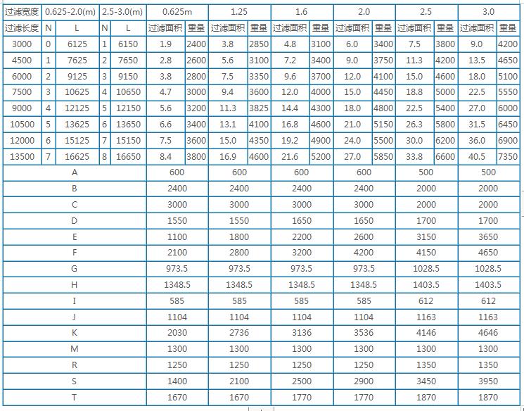 PBF型移動(dòng)盤式真空過濾機(jī)參數(shù)表:(部分規(guī)格)